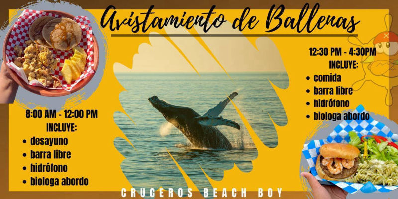 Conoce nuestros tours para avistamientos de ballenas en la bahía, es un espectáculo único y asombroso que no debes perder.